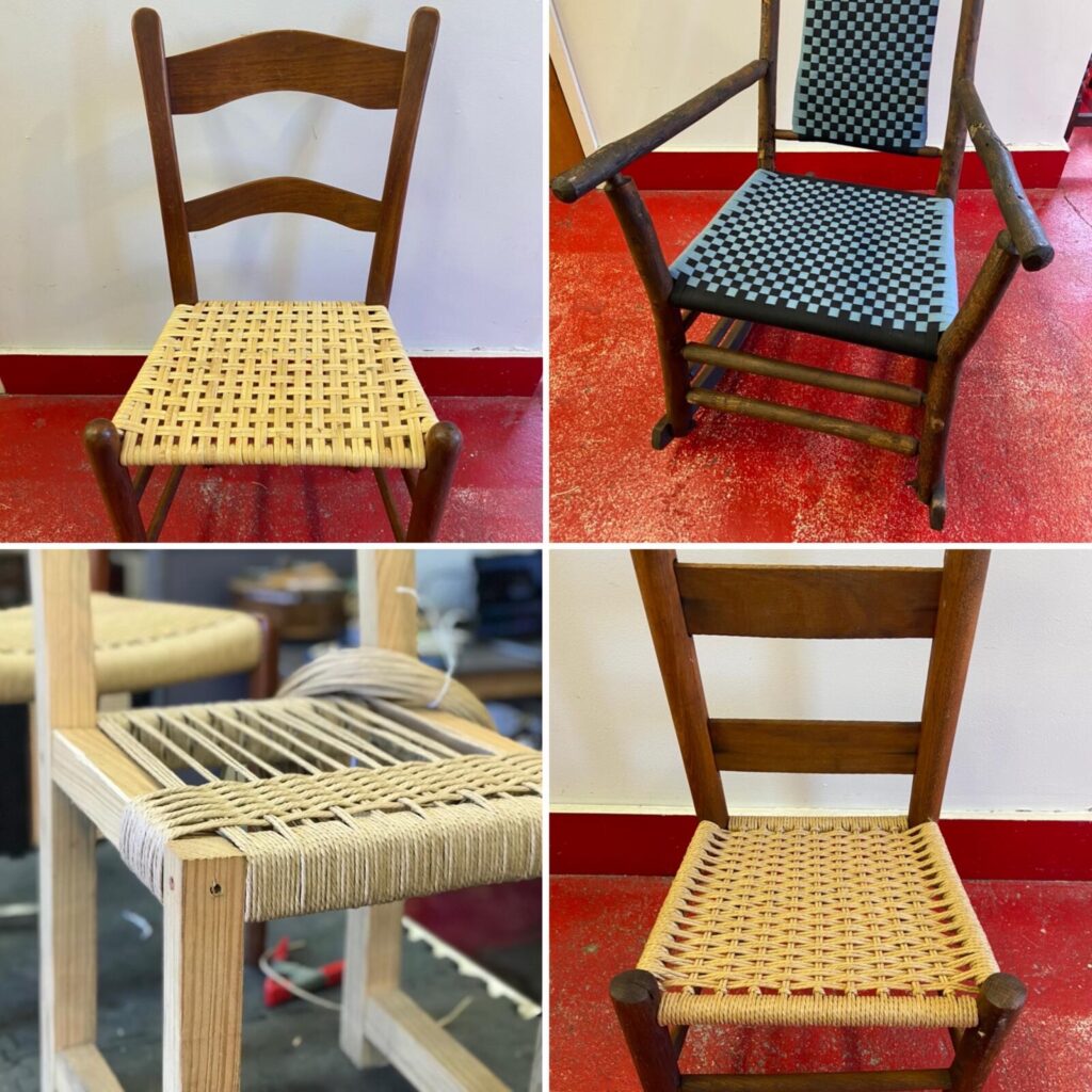 We have designed a comprehensive curriculum for all levels of weavers that is designed to meet your chair goals: enhance your furniture making practice, broaden your craft school education, supplement your income, or satisfy your chair nerd tendencies. Supervised instruction will expand your skill set and give you confidence to go out on your own with your new chair caning business or hobby or to incorporate woven seating/panels into your furniture design.