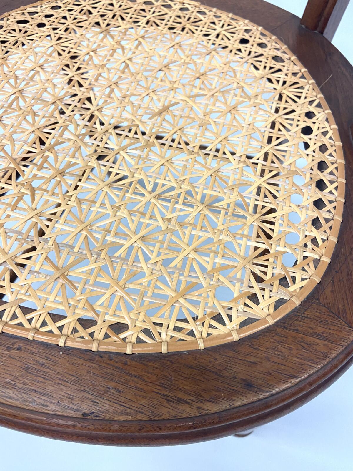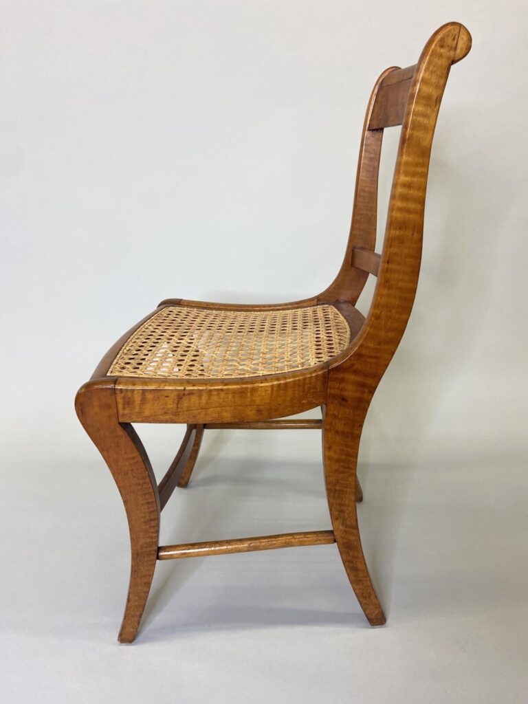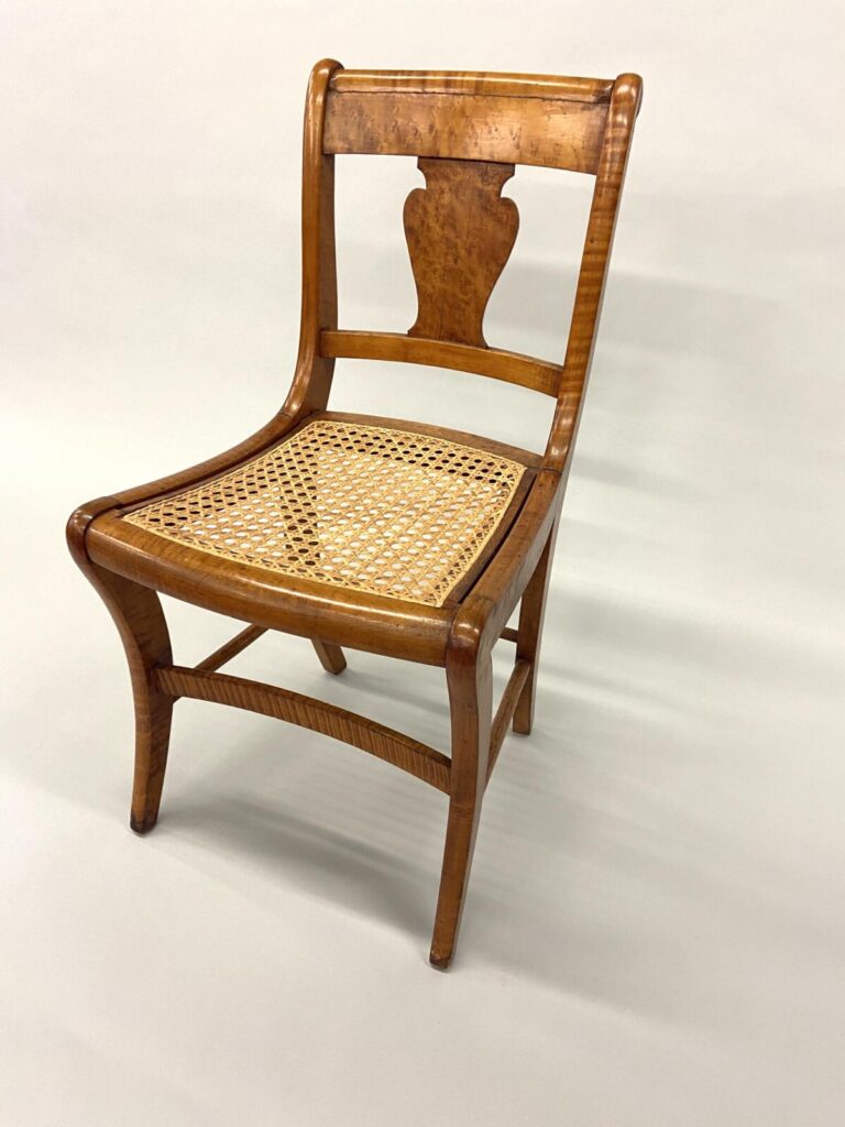 Møller No. 71 with Danish CordMøller No. 71 with Danish CordMøller No. 71 with Danish Cord – undersideMøller No. 71 with Danish Cord -with L nails and stampMid-Century Modern Møller No. 71 Chair with laced Danish Cord, woven by Dave Klingler and donated by Julia FossonJennie Alexander Chair with Shaker tape woven by Brandy Clements, chair frame made by Rue Alan DillehayShaker tape seats are traditionally woven in checkerboard on top and herringbone twill on bottom Shaker tape in flame stitch, chair frame of white oakShaker tape chair donated by Rue Alan Dillehay and woven by Brandy ClementsHickory Bark Seat by Brandy Clements on Mace chairTapering the bark at the back rail allows for no fill-ins on the sides.Mace chair frame donated by Parkway Crafts in Blowing Rock, NCThe bottom of the chair should look as good as the top.Authentic Hickory Bark on Mace Side ChairDetail of tiger maple, a common Southern wood.Fresh caned seats are a light and age over time – this one is about 5 years old at the time of photographing.Curved Seats require you to weave a little differently than flat seats. It’s not harder, just different. You have to maintain the curve or you will break your chair frame. Empire Side Chair woven by Brandy ClementsVase shaped back spat and klismos style legs make this an exceptional chair. Hand-woven Chair Caning, aka Laced Caning